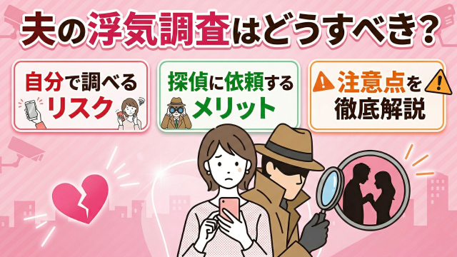 夫の浮気調査はどうすべき?自分で調べるリスクと探偵に依頼するメリット、注意点を徹底解説