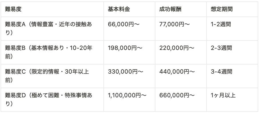 忘れられない人に関する調査の費用と期間